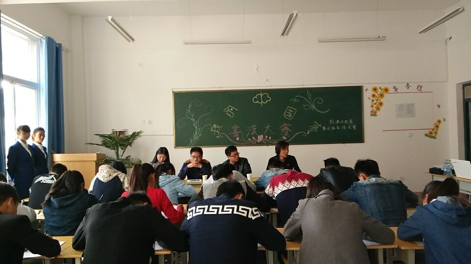 能源工程系第四屆書法大賽于2015年10月20日下午5點在明德樓104教室隆重舉行。本次書法大賽經過層層海選,最終有18位同學進入決賽。這次書法大賽邀請了侯舵、付江鵬兩位老師。