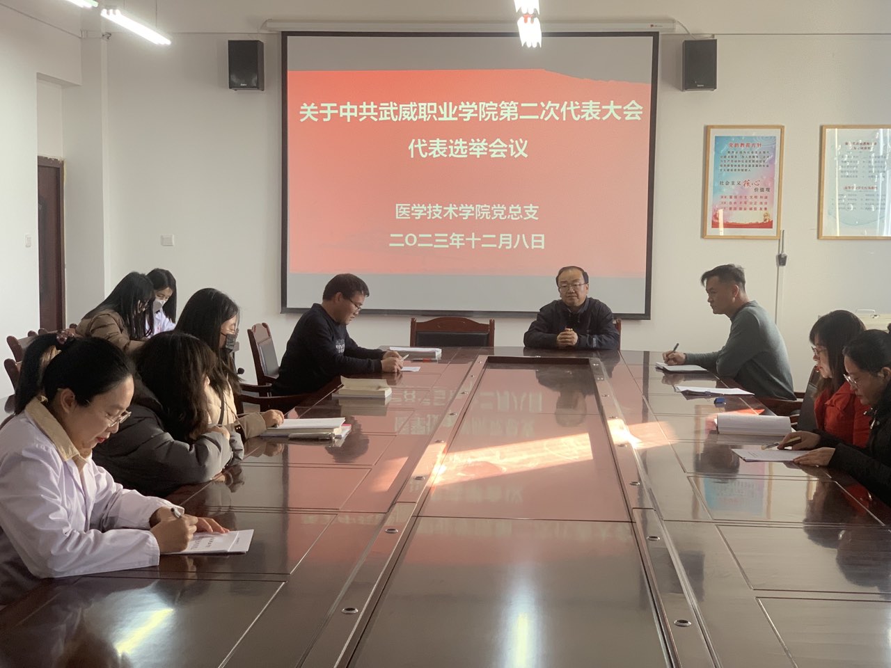 根據(jù)學校黨委統(tǒng)一部署,12月8日上午,醫(yī)學技術學院黨總支在尚德樓404會議室召開黨員大會,選舉產(chǎn)生出席學校第二次黨代會代表,會議由醫(yī)學技術學院黨總支書記黃文源主持。