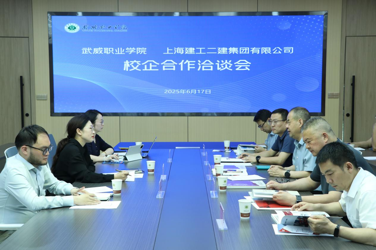 6月17日,上海建工二建集團有限公司黨委副書記、工會主席顧琦,人力資源部副經理楊曉燕,上海建工二建集團建筑智能化工程有限公司總經理助理孫海軍一行來校考察交流,洽談校企合作事宜。校企合作洽談會在能源科技樓一樓報告廳舉行,黨委副書記翟存祥,黨委委員、副校長王守云出席洽談會并講話,招生就業處、智能制造學院、信息技術學院負責人參加會議。