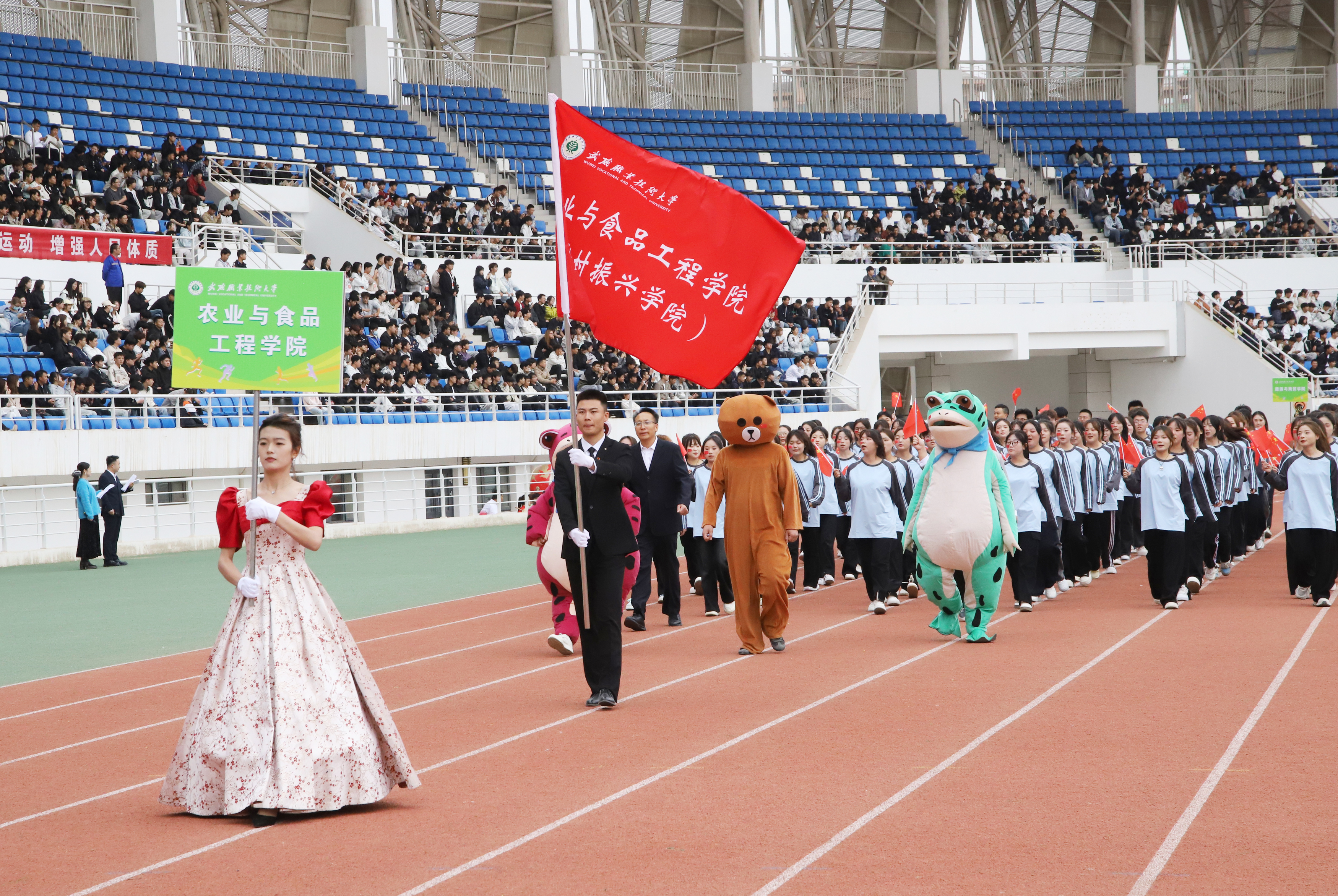 伴隨著激昂的《運動員進行曲》,國旗護衛隊、彩旗隊、裁判員隊伍、各學院方陣依次入場,隊列步伐整齊有力,口號堅定嘹亮,充分展示了師生良好的精神風貌。