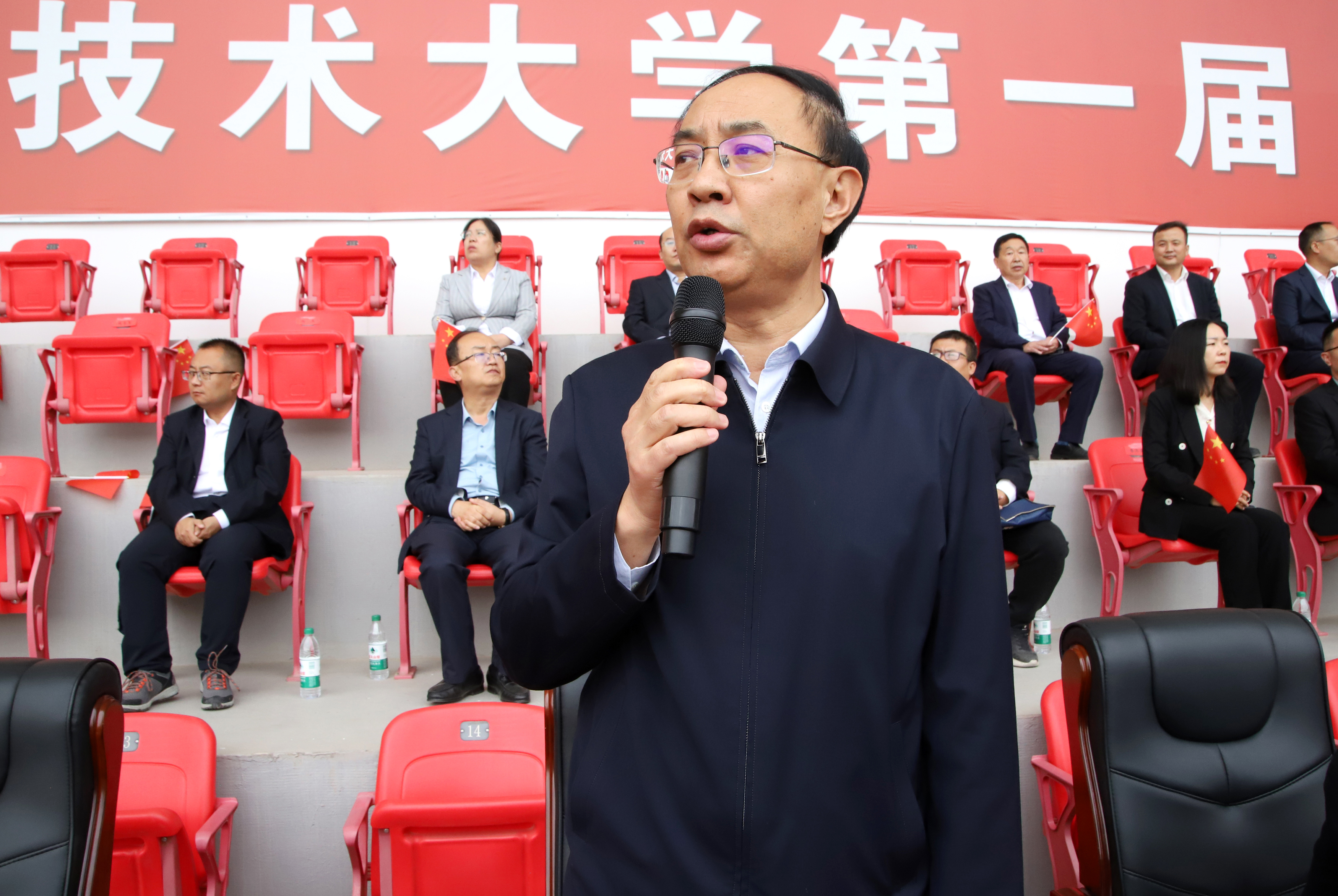 李海軍致開幕辭,他對運動會的召開表示祝賀,向全體運動員、裁判員、教練員表示問候,向精心籌備賽會的師生表示感謝。他指出,體育是教育的重要組成部分,是立德樹人的重要載體,學校始終堅持五育并舉、全面發展的育人理念,將體育育人作為錘煉意志、健全人格和涵養“工匠精神”的重要途徑。他希望廣大師生堅持以體育人、以體育智、以體育心,在奔跑跳躍間夯實成長根基;堅持養成鍛煉習慣,擁抱健康生活,在持之以恒中積蓄奮進能量;堅定傳承拼搏精神,勇擔時代使命,在新征程上共繪發展新篇。同時,他號召全校師生將“更高、更快、更強、更團結”的體育精神,熔鑄到日常的學習和工作中,以海納百川的開放胸襟兼收并蓄,以自立自信的奮斗姿態勇攀高峰,在“創建西部示范、全國一流職業技術大學”的新征程中展現更大作為!