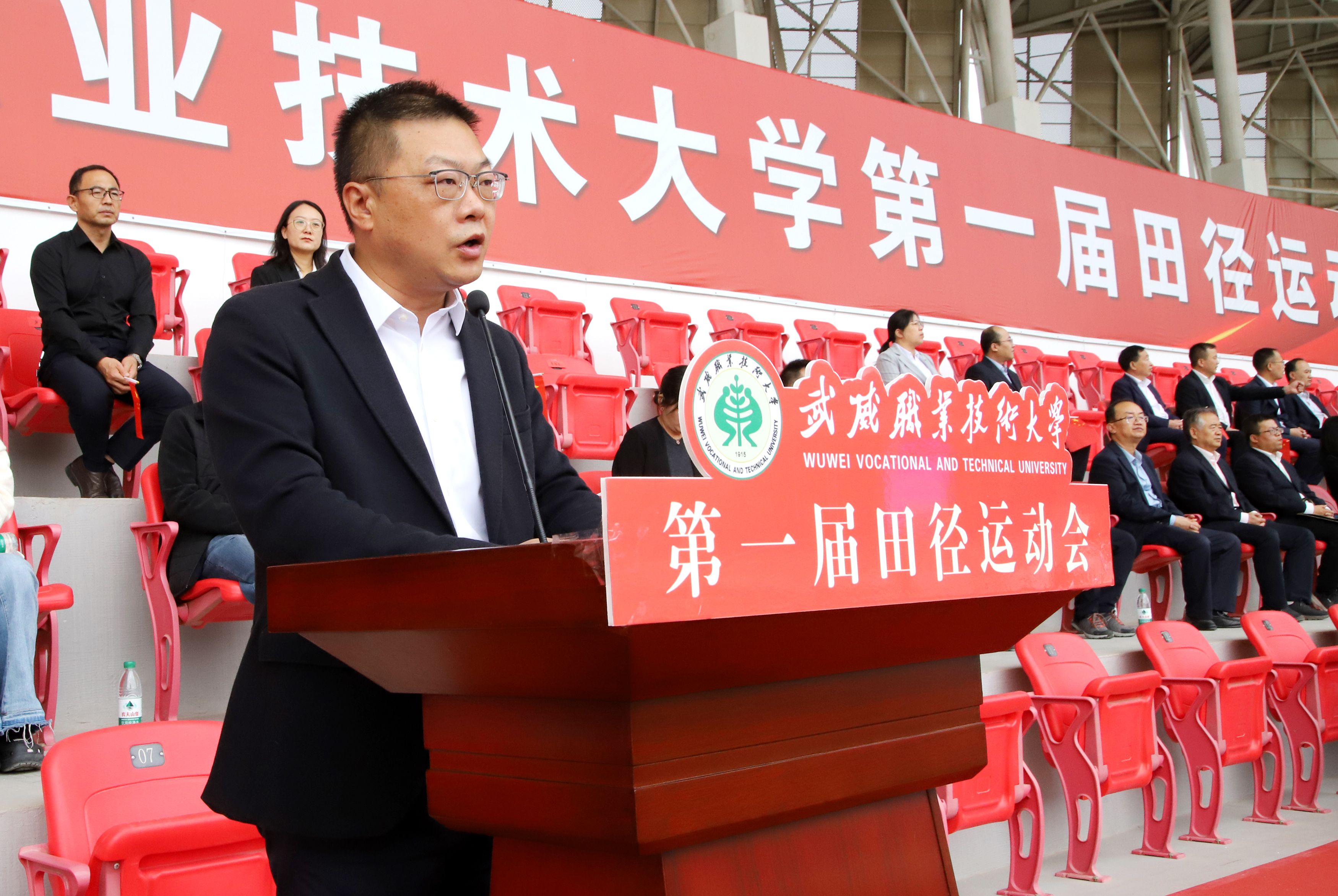 王宏宣布武威職業技術大學第一屆田徑運動會開幕。