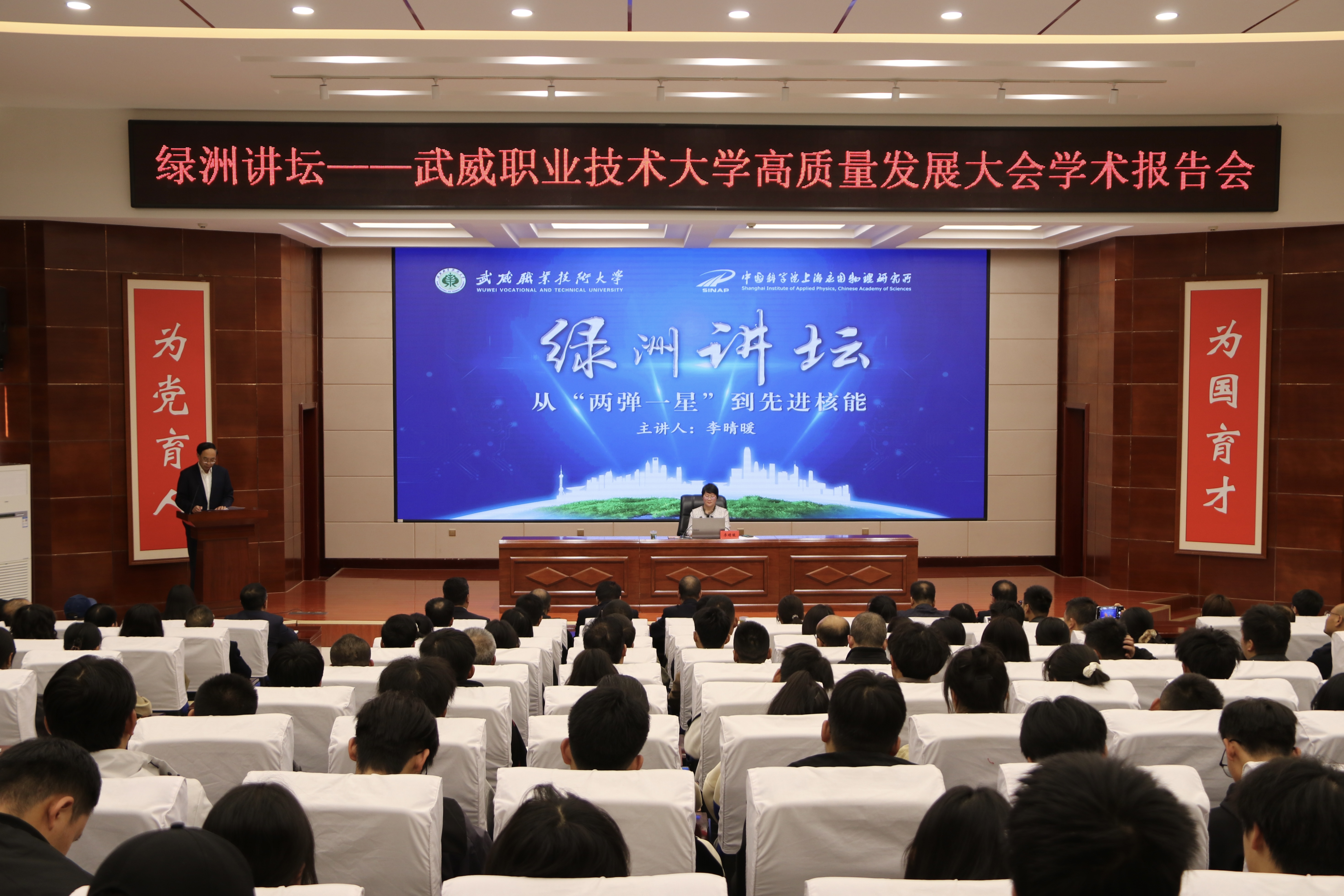 10月12日下午,中國科學院上海應用物理研究所黨委書記、副所長李晴暖研究員,受邀做客武威職業技術大學“綠洲講壇”,以《從“兩彈一星”到先進核能》為題,為該校220余名師生代表帶來專題學術報告。
