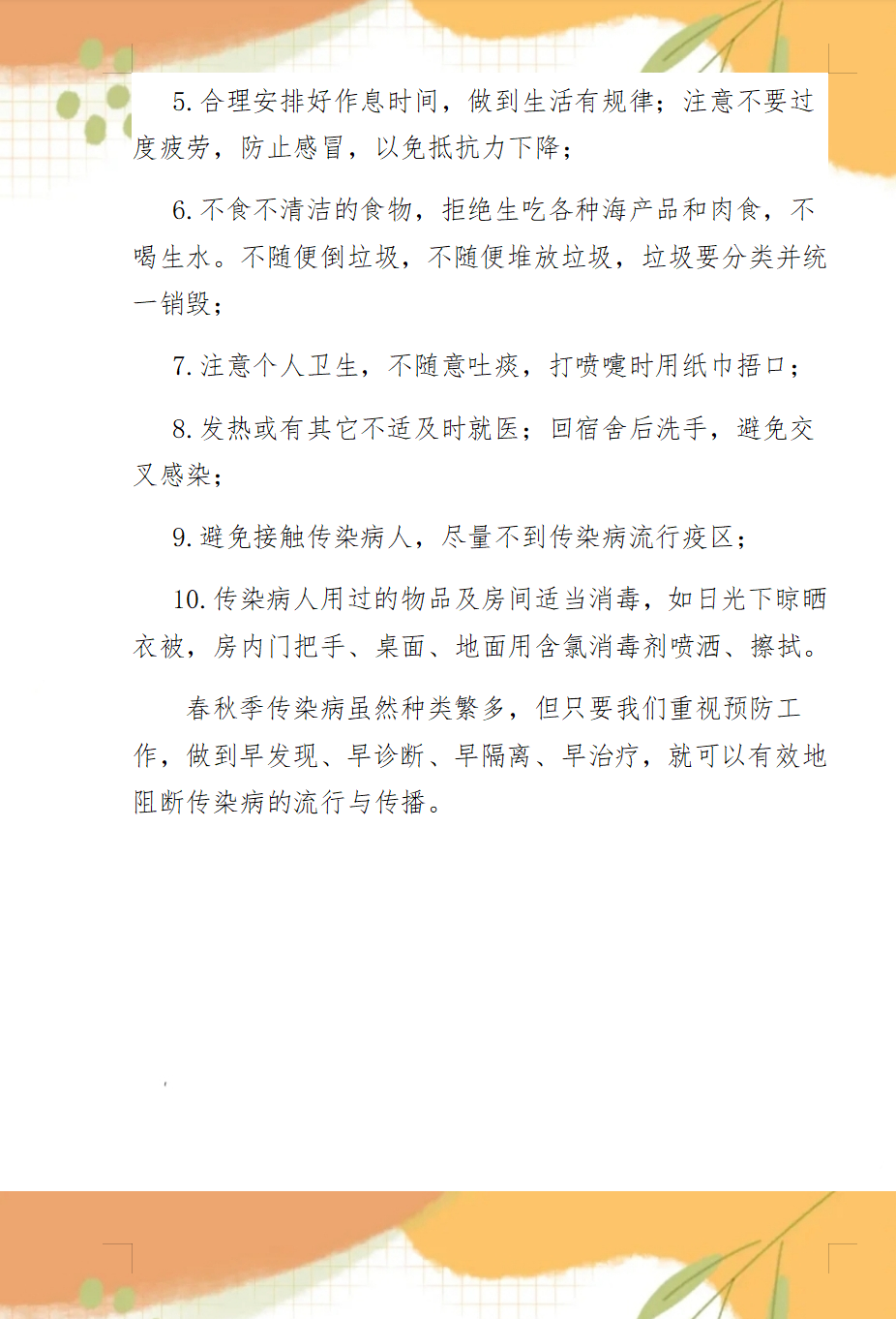 春秋季其他類傳染病預防知識