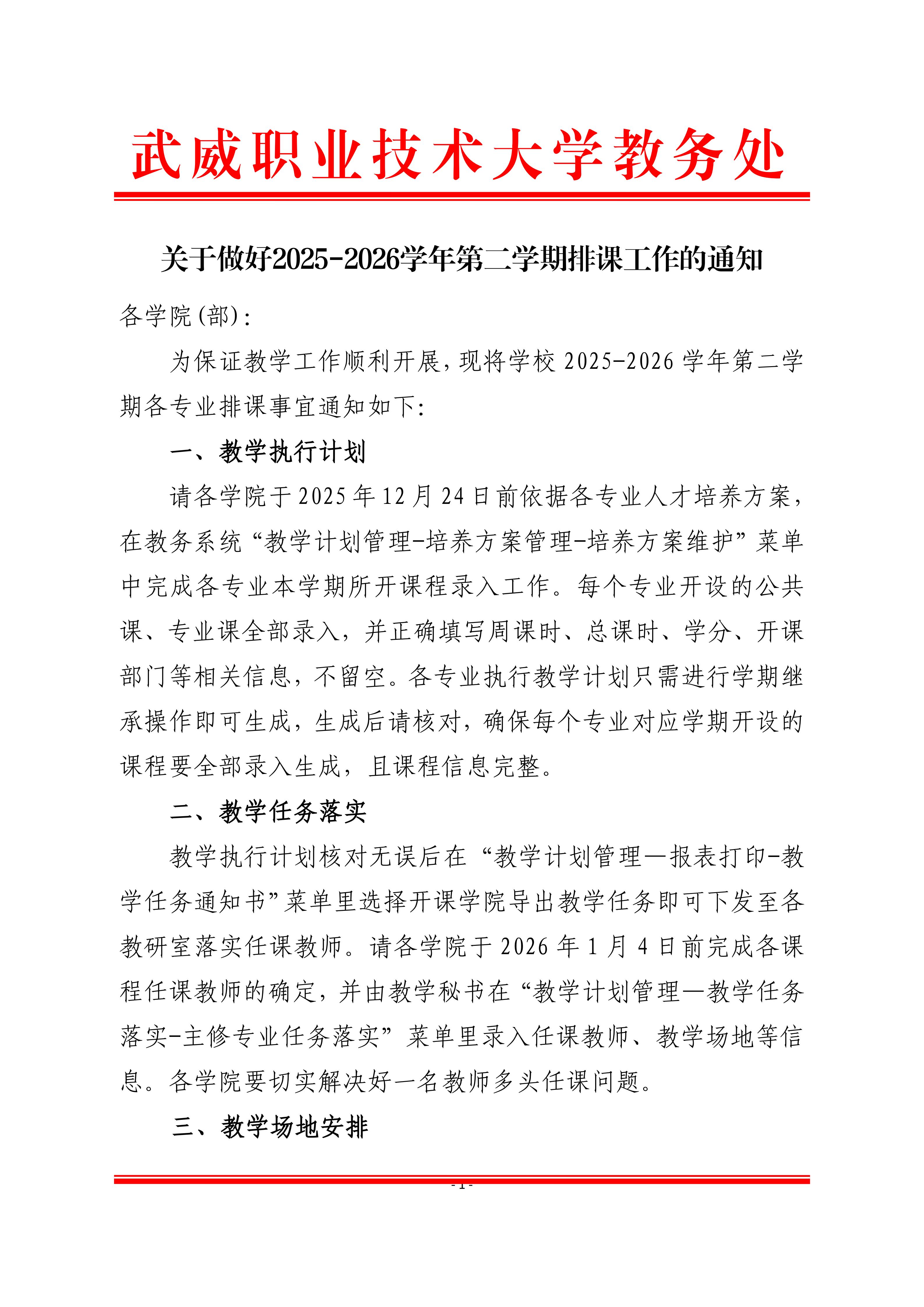 關(guān)于做好2025-2026學(xué)年第二學(xué)期排課工作的通知