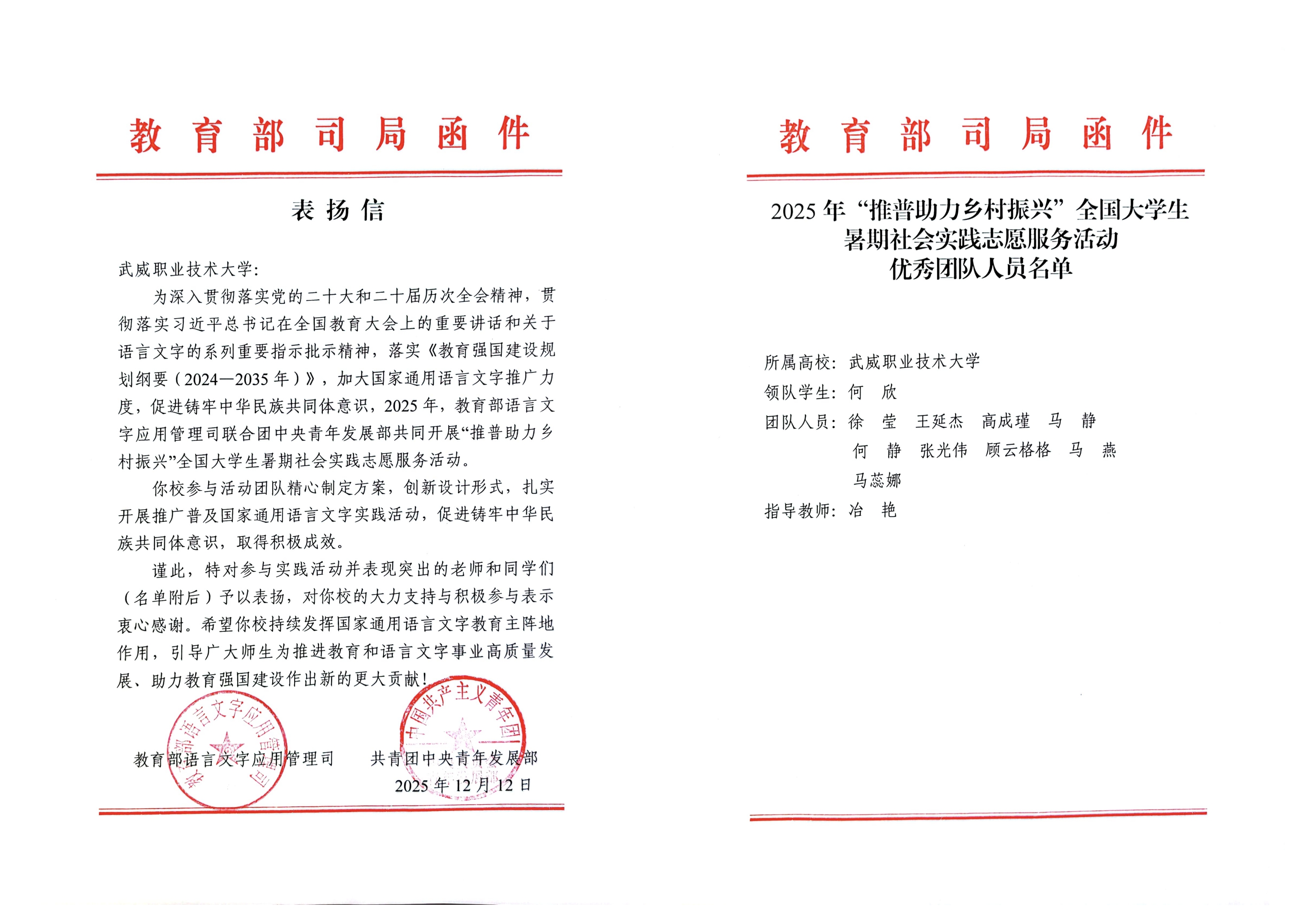 喜報!武威職業技術大學“推普助力·鄉村振興”暑期社會實踐團隊獲評全國優秀團隊