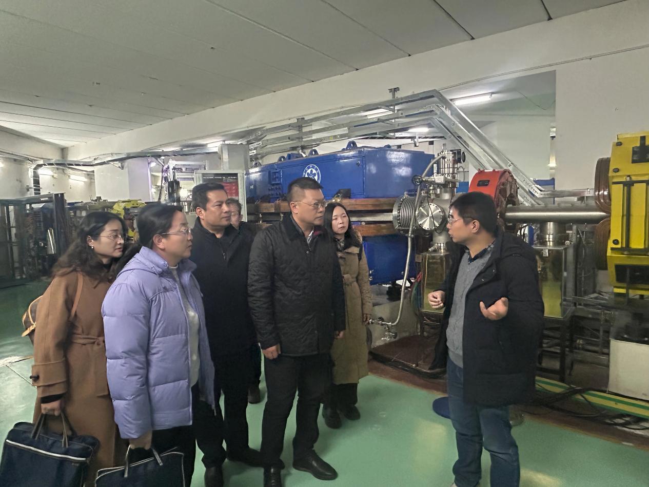 隨后,在醫用探測器室主任毛瑞士與副主任徐治國的陪同下,調研組實地參觀了“國之重器”——蘭州重離子加速器裝置,詳細了解了其結構組成、運行機制與核心技術原理。毛瑞士結合該裝置在重離子醫用探測器研發、醫用束測控制等領域的實際應用,闡釋了核探測技術對提升醫學診療精度的支撐作用,使調研組成員切身感受到大科學裝置的科技魅力與實用價值。