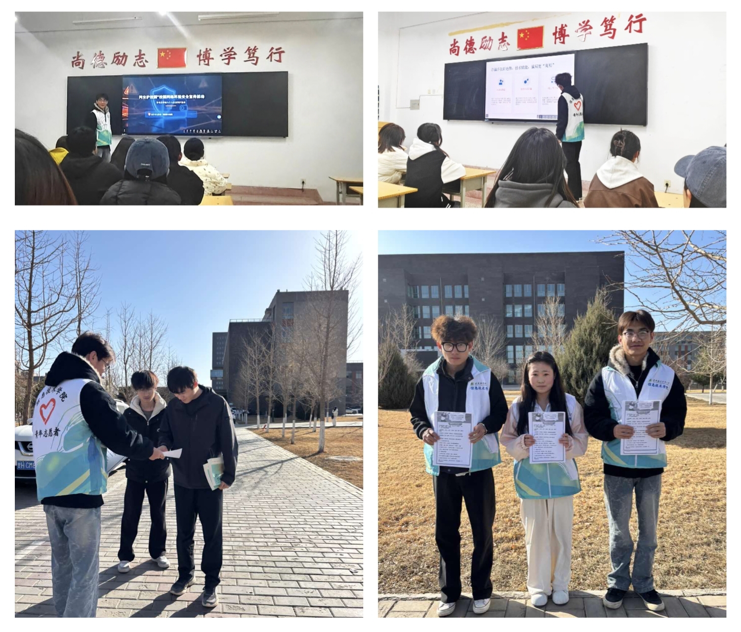 為深入踐行 “奉獻、友愛、互助、進步” 的志愿精神,3月5日,信息技術學院團委組織開展 “學雷鋒日” 集中志愿服務活動。團委、青協(xié)的青年志愿者化身 “網(wǎng)絡安全宣傳員”,開展了主題為 “網(wǎng)安護校園” 的網(wǎng)絡安全宣傳教育活動。