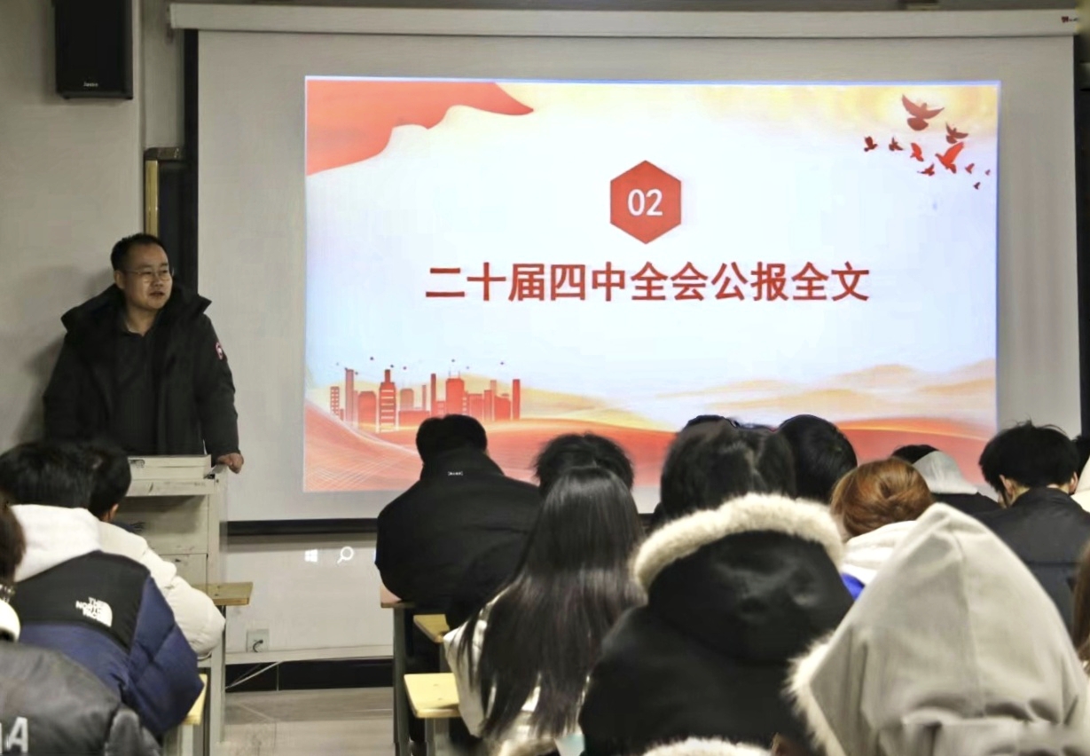 12月18日,學院學生支部書記、分團委書記楊峰面向入黨積極分子及團學干部開展專題宣講。他結合大學生創新創業、“三下鄉”社會實踐、志愿服務等青年群體喜聞樂見的實踐載體解讀全會精神,并圍繞“有理想、敢擔當、能吃苦、肯奮斗”的新時代青年要求,激勵同學們堅定理想信念、錘煉過硬本領,主動將青春奮斗融入“十五五”時期現代化建設大局,貢獻青年力量。