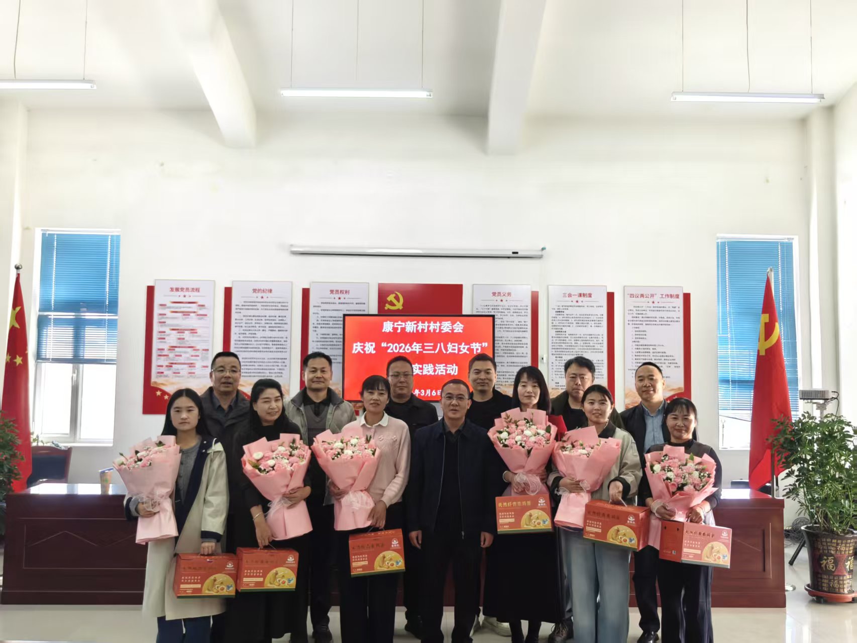 講座結束后,學校駐村幫扶工作隊與康寧、幸福新村聯(lián)合開展了“三八婦女節(jié)”慶祝活動,為“村兩委”婦女同志送上了鮮花、節(jié)日禮品和美好祝福。