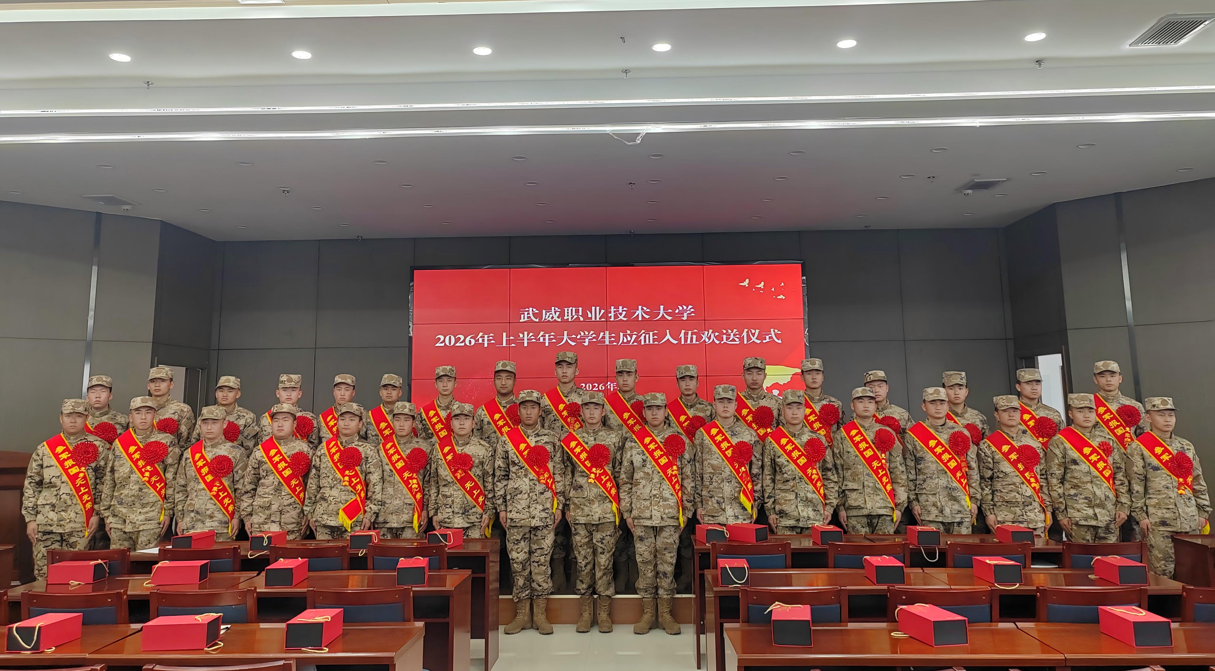 3月14日,學校組織開展2026年上半年大學生參軍入伍歡送活動。在學校報名參軍的26名大學生整裝待發,即將離開母校奔赴軍營,投身祖國最需要的地方。學生工作部部長張世亮及各學院輔導員、班主任代表前往民勤縣役前教育訓練基地對參軍學生進行慰問并為他們送行。
