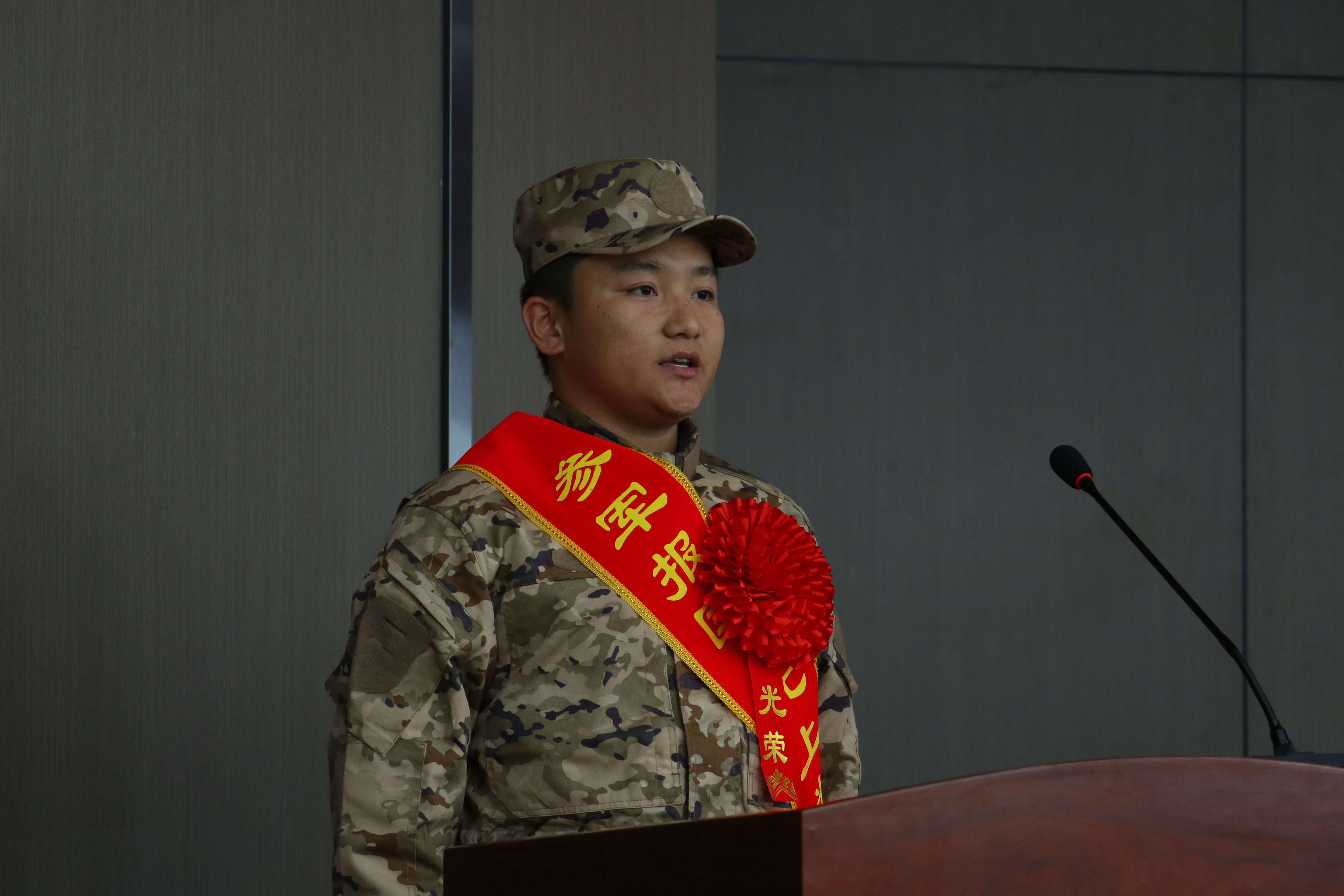 信息技術學院23級數字媒體大專班蔡紅強同學代表入伍新兵發言,表示將不負母校培養,不負學校領導、老師和同學的期望!傳承衛國戍邊英雄精神,爭取在軍營中建功立業,報效祖國,展現高校學子良好的精神風貌。