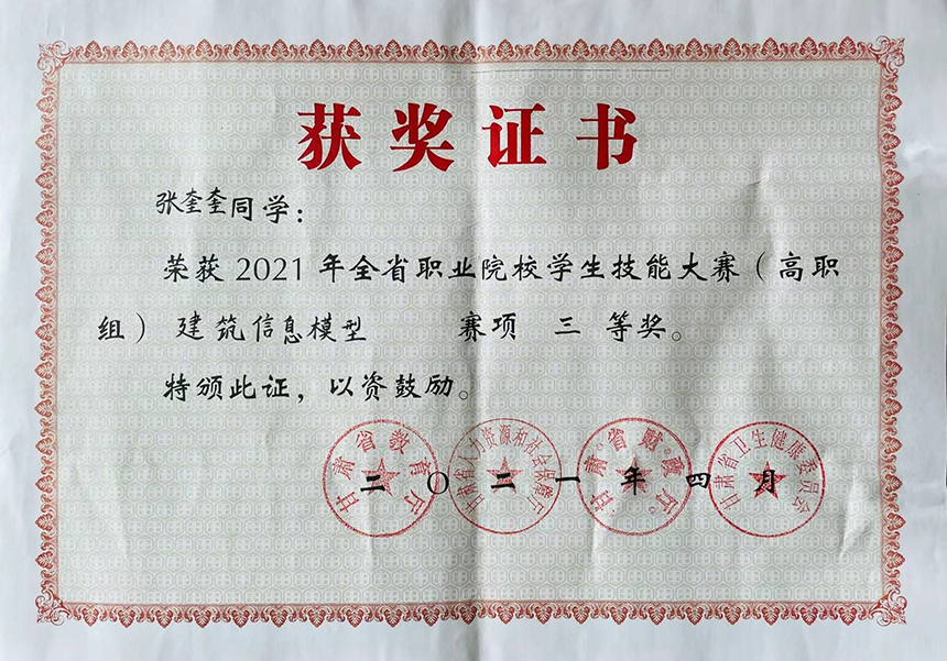 2021年全省職業院校學生技能大賽(高職組)建筑信息模式賽項三等獎
