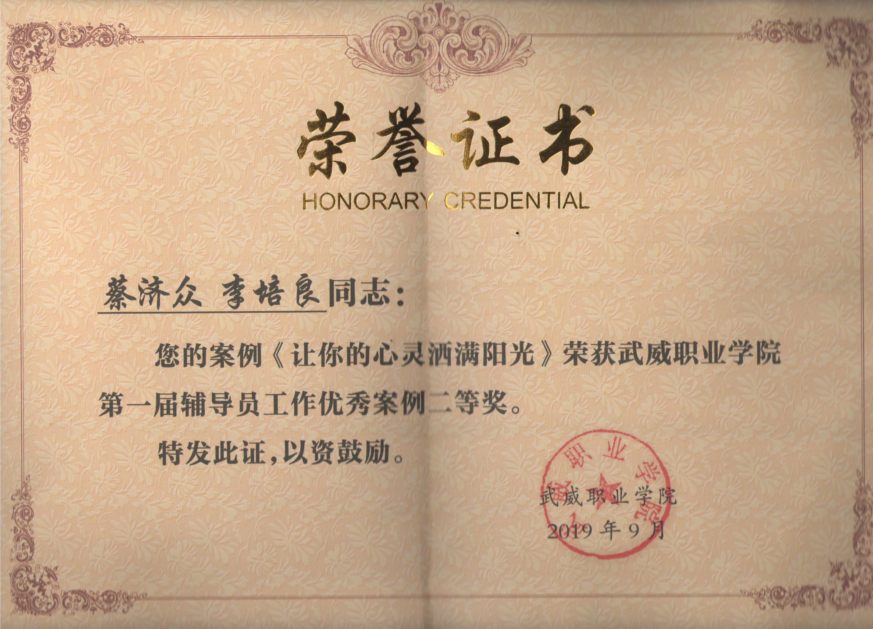 武威職業學院第一屆輔導員工作優秀案例《讓你的心靈灑滿陽光》